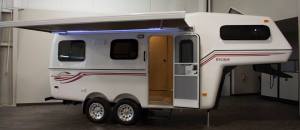 - The fiberglass construction is light weight so it does not require a heavy duty truck to tow and it’s fully molded exterior keeps you snug and dry inside.