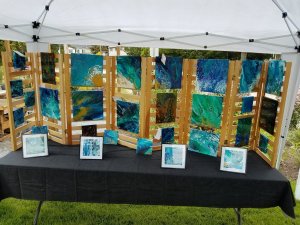 Here’s a big shout out to all the terrific folks I saw at the Dragonfly Festival this past weekend! Some old friends stopped by and what fun it was to catch up. I also met many new folks and had such a pleasant day chatting about art and travel. It was exciting to share what I have learned about Acrylic Paint Pouring and I think there may soon be more messy painters out there pouring paint soon!