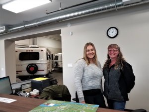 I decided to stop off at Escape Trailer Industries and bring them the cable needed for the antenna and say “Hi”! When I arrived, a man stopped me in the parking lot to talk. He was from Vancouver and considering the purchase of an Escape Trailer. We had a lovely conversation and after about 5 minutes of chatting, a woman came out from the office and said “You must be Sarah! I want a hug!!” It was Meagan, one of my customer service reps who has been helping me and sending me all the lovely photos of the daily progress on Wild Thing!