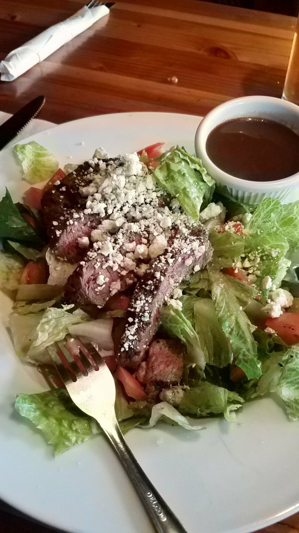 After days of a diet consisting mostly of yogurt, fruit, trail mix, and cheese, I was ready for some steak! Lunch was yummy and a real treat!