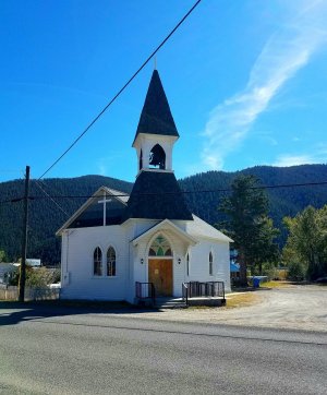 The town has a Post Office, (which was closed at noon on a Thursday!) and a pretty church, a pizza place and a cafe/bar. There was also a Pottery Shop but it was closed too. I’ll try earlier tomorrow and maybe I can catch it open. I also found a sign describing the mining history of this area (click picture to enlarge)