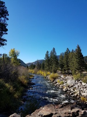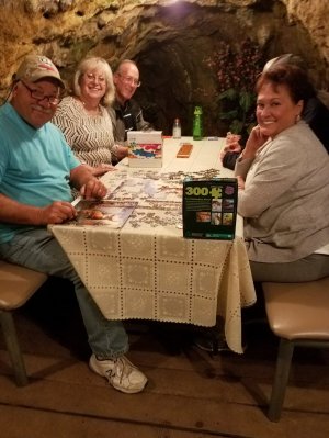 It was a cold night, 36 degrees, but I stayed warm in the camper with the head pads lining the bottom of the camper and the furnace turned on to keep me warm. I set my alarm for 7 so I could take 4 treatments at the mine. A treatment includes a 10-minute soak of hands and feet in the 44-degree water running through the mine followed by an hour hanging out just breathing the air and drinking the water. There are also spigots where clean mineral water flows that can be used to flush your eyes (eye cups available at the gift shop). After an hour in the mine, you must leave for 2 hours before returning for another hour. I went up to the mine for my first treatment before I had any coffee or breakfast and after 6 minutes with my hands and feet submerged in the frigid water my body revolted and I felt sick to my stomach and light headed. I stretched out for a few minutes on a bench and the feeling passed quickly, but decided I would need food before attempting the 10-minute soak in that cold water again!