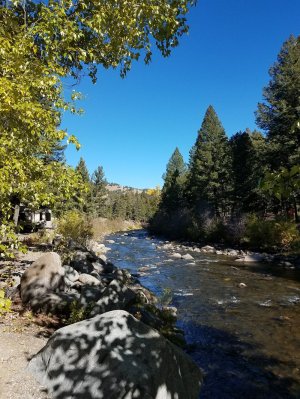 It was a cold night, 36 degrees, but I stayed warm in the camper with the head pads lining the bottom of the camper and the furnace turned on to keep me warm. I set my alarm for 7 so I could take 4 treatments at the mine. A treatment includes a 10-minute soak of hands and feet in the 44-degree water running through the mine followed by an hour hanging out just breathing the air and drinking the water. There are also spigots where clean mineral water flows that can be used to flush your eyes (eye cups available at the gift shop). After an hour in the mine, you must leave for 2 hours before returning for another hour. I went up to the mine for my first treatment before I had any coffee or breakfast and after 6 minutes with my hands and feet submerged in the frigid water my body revolted and I felt sick to my stomach and light headed. I stretched out for a few minutes on a bench and the feeling passed quickly, but decided I would need food before attempting the 10-minute soak in that cold water again!