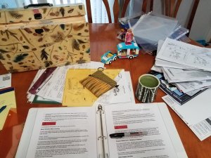 I’m still organizing the paperwork and manuals for the camper, receipts from the trip, and travel information I collected on my journey. I want to work out a system that will allow me to keep a record of where I’ve been and plan future trips. I’ll let you know when I settle on a format. Notice that my camper Supergirl was on hand for inspiration!