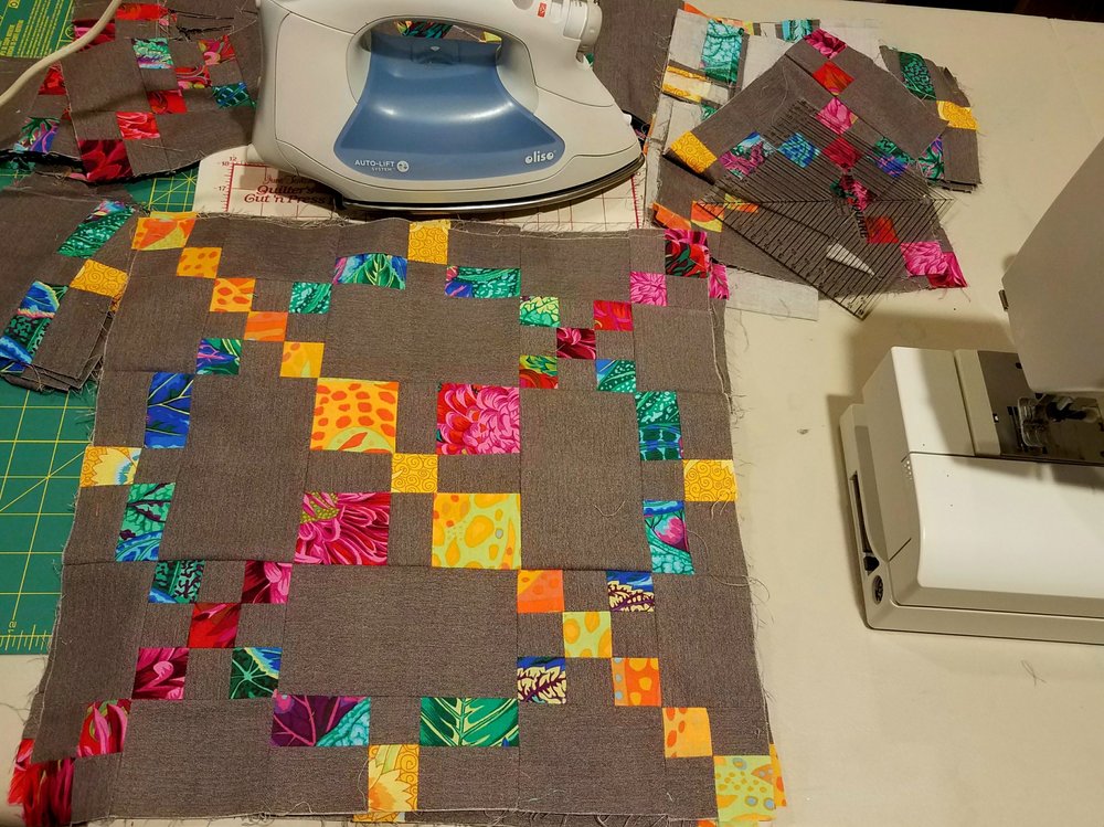 After running errands and taking a nice long walk with Dexter I spent some time at the sewing machine working on my Camper Quilt for Wild Thing. Although fall was not consciously in my mind when I chose the fabrics for this quilt, they quite accurately reflect the colors of the season!