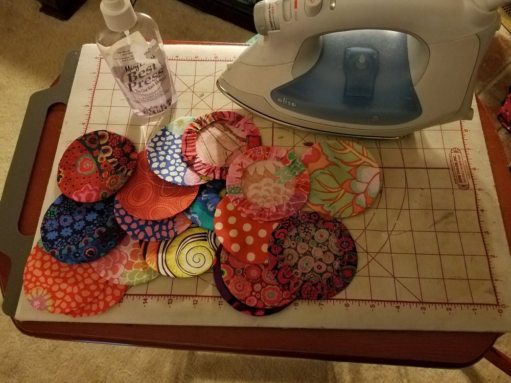 I was battling a migraine most of the day today, so I didn’t get much done. I felt better in the late afternoon and spent some time prepping circles for the camper quilt.