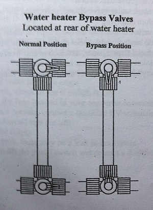 I had emptied the black and gray tanks before arriving home and had drained the fresh water tank before taking the camper in for service. To drain the hot water heater, I first bypassed the water heater using the bypass valves located under the dinette bench seat. I was then ready to drain water from the hot water tank by removing the anode plug. When you do this be sure to open the pressure relief valve before removing the anode plug. I failed to do this and it resulted in a rather abrupt spray of water when the anode came loose. I got quite a bath and likely won’t forget that step again! Once the water has drained from the hot water tank, I applied Teflon tape to the threads on the anode, replace it, and closed the pressure relief valve.