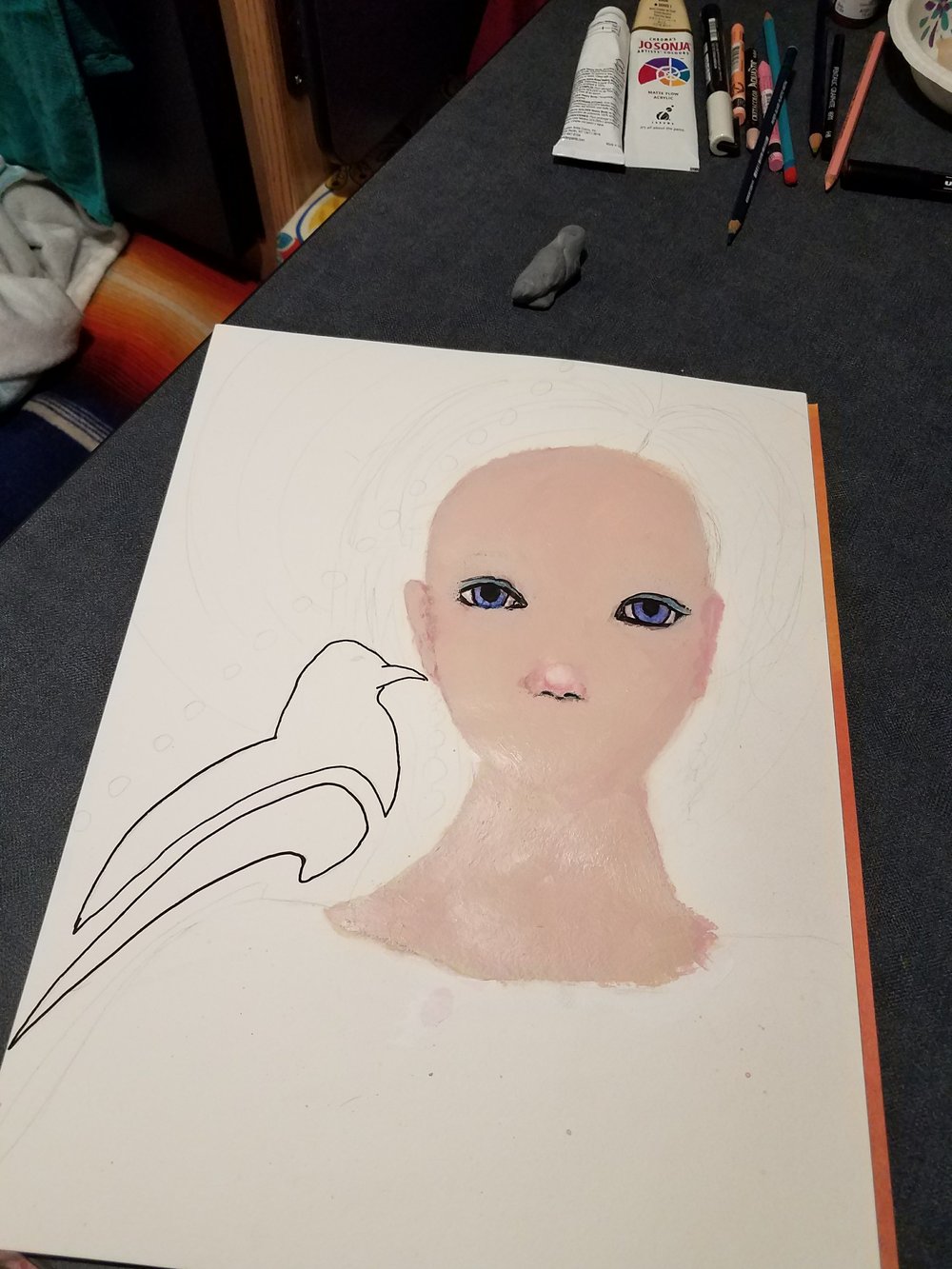 Quiet day today spent working on an illustration. I was pleased with the sketch, but when I started to paint her it just wasn’t going well, so this evening I have put a layer of “foundation” on her face and went for a soak in the hot springs. I’ll try again tomorrow! Practice practice practice…
