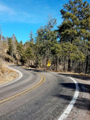 I remember fondly my parents taking “Sunday Drives”. They were exceptionally hard-working people and Sunday was the only day they found time for rest and relaxation. Often after church, if the weather was nice, they would set out on a leisurely drive down some back country road to enjoy the landscape. I often accompanied them on these Sunday Drives and developed a love for the practice, so after making some progress this morning on my illustration ( I think her name is Pinky!) I decided to take a drive through Gila National Forest to Truth or Consequences, New Mexico.