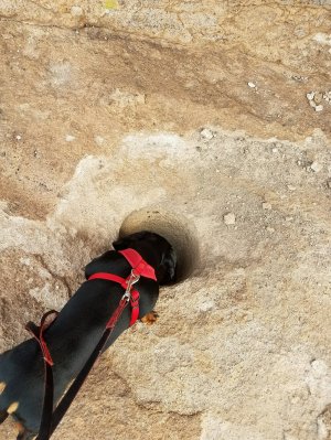 We also found several grinding holes in the Rocks where the women used to grind nuts and grains. Dexter enjoyed investigating these holes!