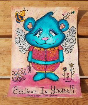 Today was art day! It was cold overnight, down in the twenties, so as planned, I spent the day mostly inside. I finished the bear illustration and learned quite a bit on this one. I experimented freely and found success with some tries and others I won’t repeat. I’m pushing myself to try different materials and techniques without worrying too much about the outcome.