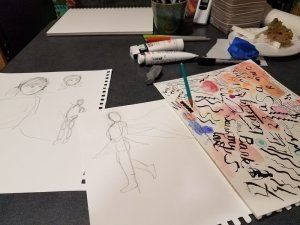 Tonite I’m sketching out a plan for the next illustration. If the weather is cool again tomorrow I’ll stay in and paint again.