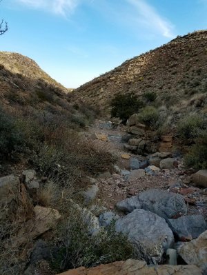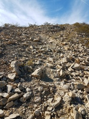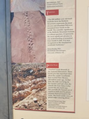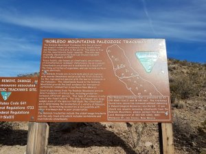 I took Dexter for another a short hike around the park before heading out solo to explore the Prehistoric Trailways National Monument. This site is still in development so the information and trails were primitive, but it offers a window into what the area was like 280 million years ago. The site, which is located in the Robledo Mountains, is less than 10 miles from here. The hike was quite strenuous for me and the trail was sketchy with lots of loose rocks and very few markers. In two miles I gained 1224 feet in elevation! Now that sure got my heart pumping! I was determined to make it to the site, so I just kept pushing on and I’m glad that I did. Some very interesting fossils awaited me at the end of the trail. I hope you enjoy the pictures! I also took some video along the way of the views. You’ll hear how hard I’m breathing in the final video, I left that in to give you some indication as to the difficulty of this hike!