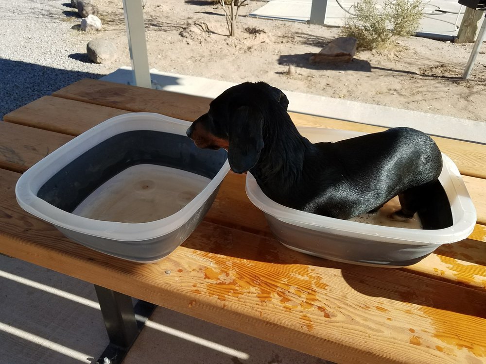 Once he was clean, it was time to gather his bedding and mine along with the rest of the laundry and head into Las Cruces to finish the cleaning job. I’m finding it easy to get the laundry done at local laundromats where the washer and dryers are nice and big so things move along quickly.