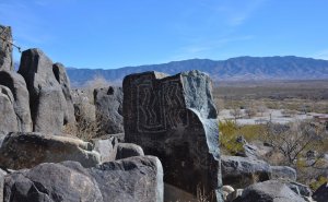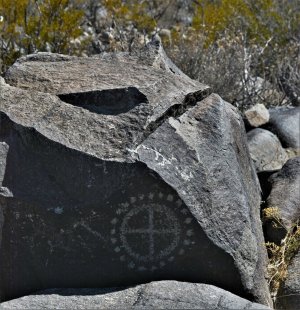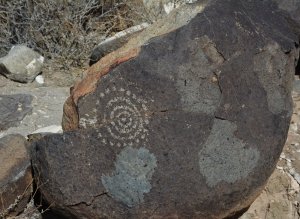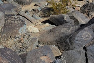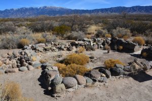 Adjacent to the petroglyph site was this area where it is believed the people who created the rock art lived. There were pottery shards as evidence of the inhabitants and replicas of their houses have been constructed to show how they lived.