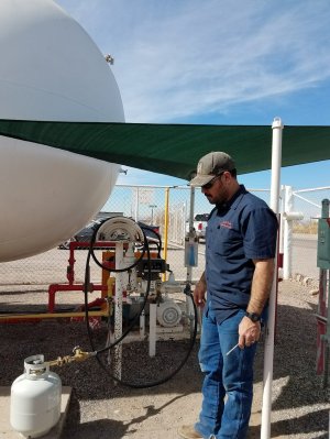 It’s great to be able to order some things from the internet, but it’s hard to get propane delivered from Amazon! We installed the new carseat and made a trip into the town of Douglas, AZ this afternoon to restock groceries and fill up a propane tank. Tomorrow is Potluck night at the park and the owners are providing barbecue chicken and ribs. I want to make cornbread and needed some ingredients. Rusty’s RV Ranch where I’m staying is quite remote. Douglas, the the nearest town with services is about 54 miles away. While I was in town, I stopped at Cochise Supply and Juan helped me refill my propane tank. A 20 lb tank for $16.20! What a bargain! Juan noticed my Massachusetts license plate on the truck and while the tank filled, he regaled me with stories of his visit to the East Coast where he toured Springfield, Massachusetts and New York City. It’s a small world after all!