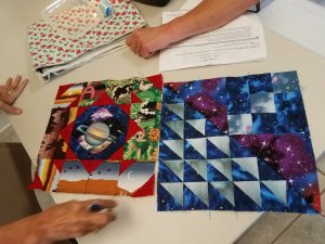 In addition to the celestial themed fabrics, Diane is mixing in some that remind her of places that she and her husband have travel together. I can’t wait to see how this quilt evolves!