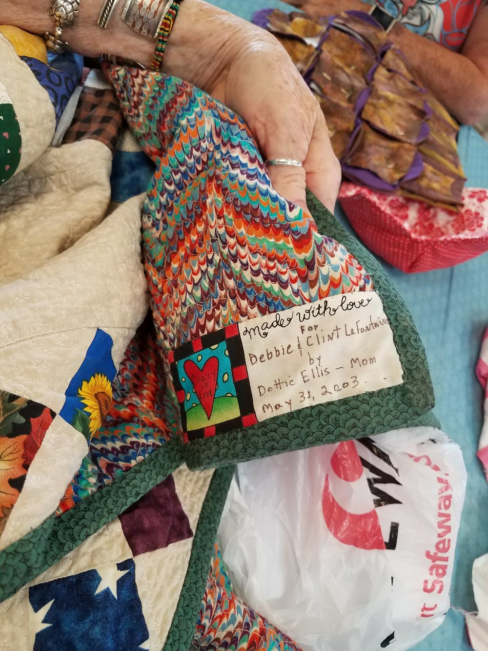 Debbie was resewing some applique hearts on a lovely quilt that her Mom made for her and her husband for their wedding in 2003.
