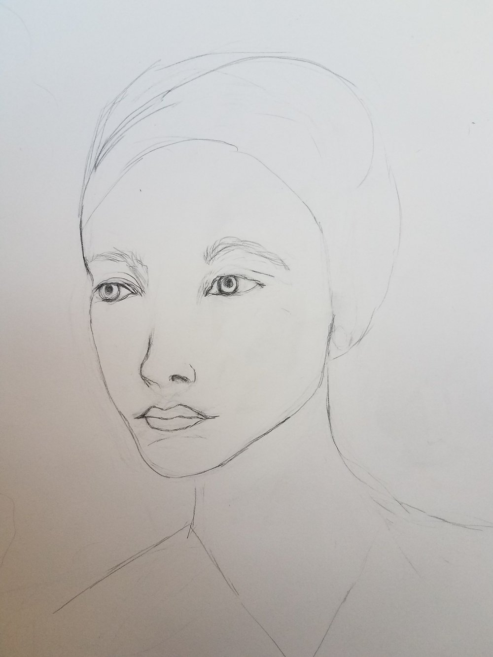 I spent the day today working on a new art piece. It’s inspired by my current online lesson but I wanted to go a bit more realistic than the lesson called for so I’m scribbling off into uncharted waters. After spending the morning struggling to sketch this 3/4 view face, I finally got something I was happy with and then was afraid to put paint to it in case I ruined it! Rusty let me use her copier in the RV park office so I could make a couple of photocopies before starting to paint. That freed me up to be a little more experimental with this girl and although she has a ways to go, I’m pleased with how she’s coming along.