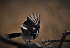 It was another very windy day here at Rusty’s RV Ranch. Dexter and I had time for a little play session this morning before the wind really picked up but then we needed to stay inside as the gusts were enough to rock the trailer back and forth and blow big walls of sand and dirt across the yard. I took advantage of the quiet day to process some photographs. I’ve been practicing with my Nikon camera trying to get some decent bird photos while hand holding my 300mm lens. Although these are not my best compositions, I’m making some progress toward getting better focused pictures while hand-holding my largest len. I just need to keep practicing! There’s also a few pictures of the sunset last night, it was spectacular! I spent more time painting this afternoon. I’m just about done with the face and will start on her clothing and background tomorrow.