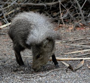 At the next house, there was a lovely park bench set up for birders beside a wire fenced yard containing several bird feeders. I was surprised to see 7 javelina grazing in this yard and was thrilled to be so up close and personal with this family group. I was even more thrilled that there was a fence between us because I got the evil eye from the alpha male and when I trained my camera on some birds he came right up to the fence to take a sniff of me. I was pretty surprised when I lowered my camera to see his snout mere inches from my leg! They were not aggressive, just curious, and clearly knew that the fence offered them protection. My favorite in this group was a juvenile with crazy longish hair. He was kind of punk looking!
