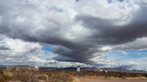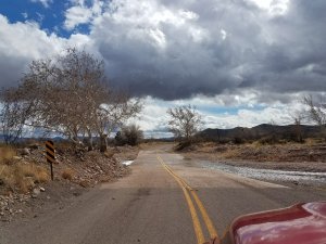 The clouds looked ominous today but I thought I’d take my chances and mosey on up into the Canyon to look for some birds. Armed with a rough map and some intel from my neighbors, I set out for a spot owned by a local who opens his property to birders. This area is one of the best birding locations in the USA and people come from far and wide to see the variety of species found here. On my way to the birding site, I had to cross a dip in the road that had a pretty good flow of water from our recent rains. It’s a good thing I have the Big Red Beast (AKA my Ram 1500!) to keep me out of trouble!