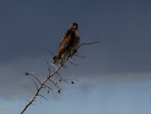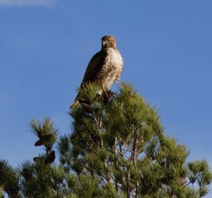 Back at the Ranch (Rusty’s RV Ranch that is!) I took Dexter for a walk and caught the tail end of a rainbow. When I turned around, there was this big beautiful hawk sitting in the brush! He let me get pretty close before taking off but then landed in a piney tree right by my camper so I got another shot at him. What a way to end this day.