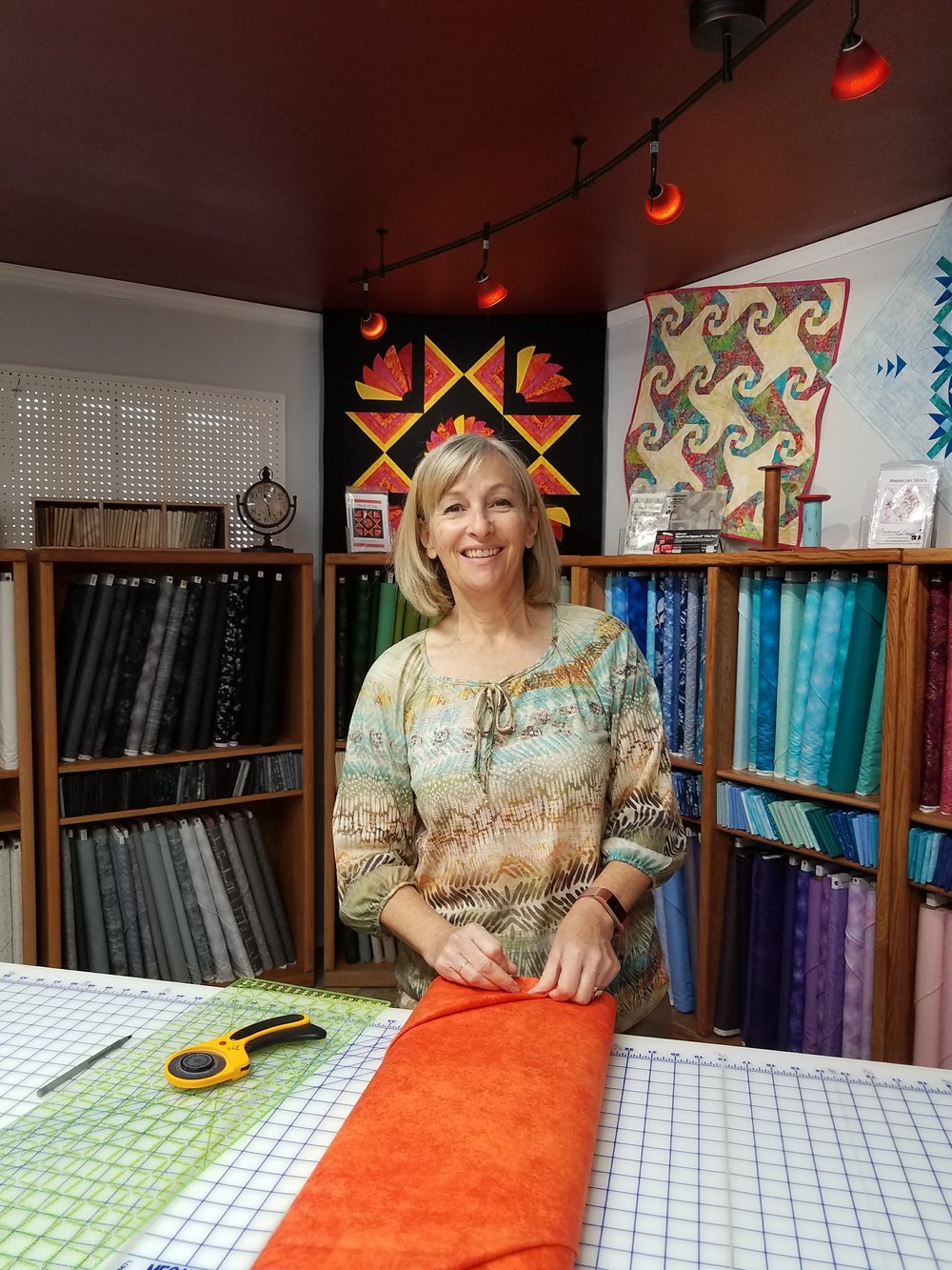 Now that I’m close to town, today was a day to catch up on errands. My first stop was a lovely quilt store in Las Cruces, Bernina Sewing & Design. I needed border fabric for the camper quilt I’ve been working on and found just the right one there, as well as a few other goodies. The staff were all very helpful and Ellen help me choose fabrics for another project.