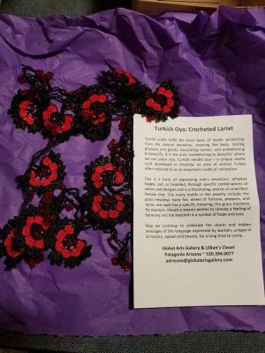 Steve bought me a beautiful lariat necklace for my birthday. It’s a Turkish Oya, a hand crocheted needle lace Lariat embellished with beading.
