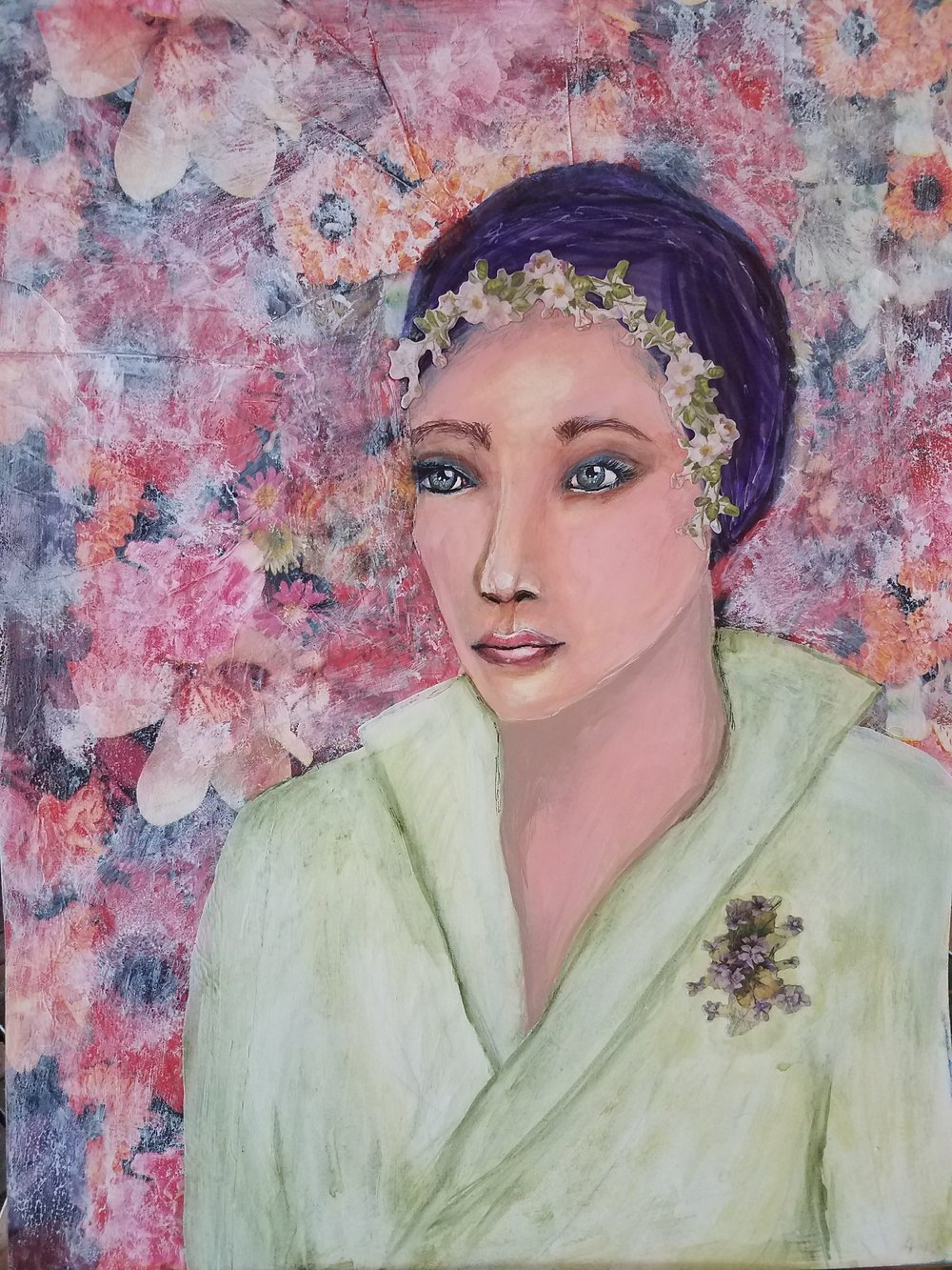 Today I pulled out the art piece I was working on just before Steve arrival and spent the day puttering with it. She’s almost done now. After letting her dry overnight I’ll do a few more tweaks tomorrow and then it will be on to the next piece! Here are some photos showing her progression today.