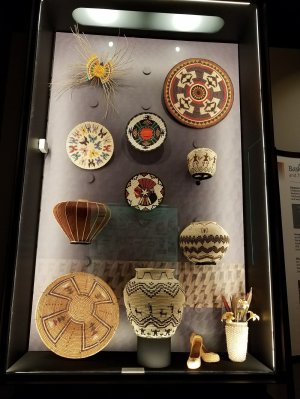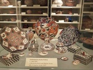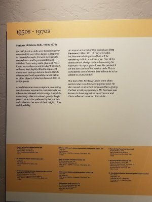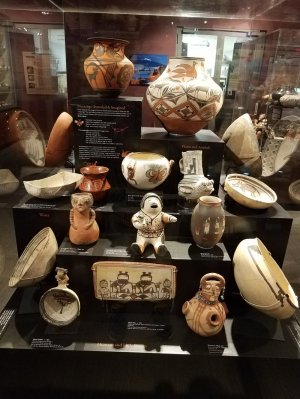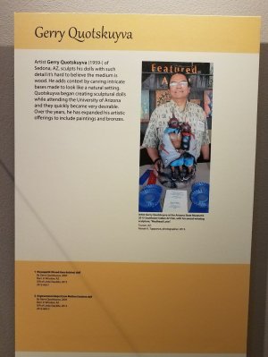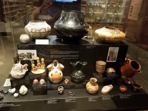 This Museum also has an astounding collection of pottery from the area. They only display a small portion of their collection at a time but there is a virtual catalog where you can view pieces not currently on display. I took a lot of pictures and even with the challenging lighting in the museum, I think you will enjoy seeing them. Here’s a big shout-out to all of my friends at the Textile Tarts Doll Club, I hope you enjoy the photos of the Hopi Dolls!